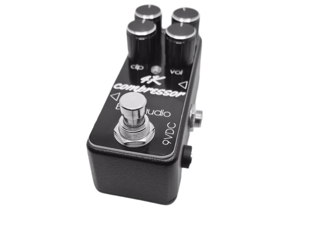 B85 audio 4K Compressor je podlahový efekt vycházející ze zapojení dnes již nevyráběného Keeley 4 Knob Compressor. Compressor je ovládaný čtyřmi potenciometry, Level - pro výslednou hlasitost, Sustain - ovládání pro sílu komprese , Attack, - který má vliv na rychlost nástupu efektu a Clip, který chrání výstupní signál před nežádoucím zkreslením.